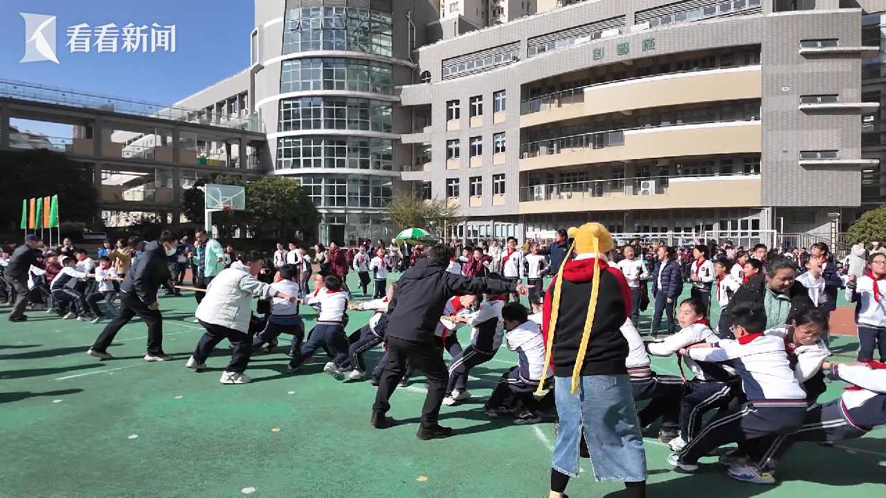 30分体育中考指挥棒高悬,家长用课外班、“体育外卖”给孩子“加餐”。而在校园里,从这学期开始,“每天两小时综合体育活动”也成了一项硬指标,体育老师们也在烧脑,如何拉满孩子们的运动量:场地不够的,把社区公园化作“大操场”;每月一次的运动会,也要尽量让更多小朋友都能参与。