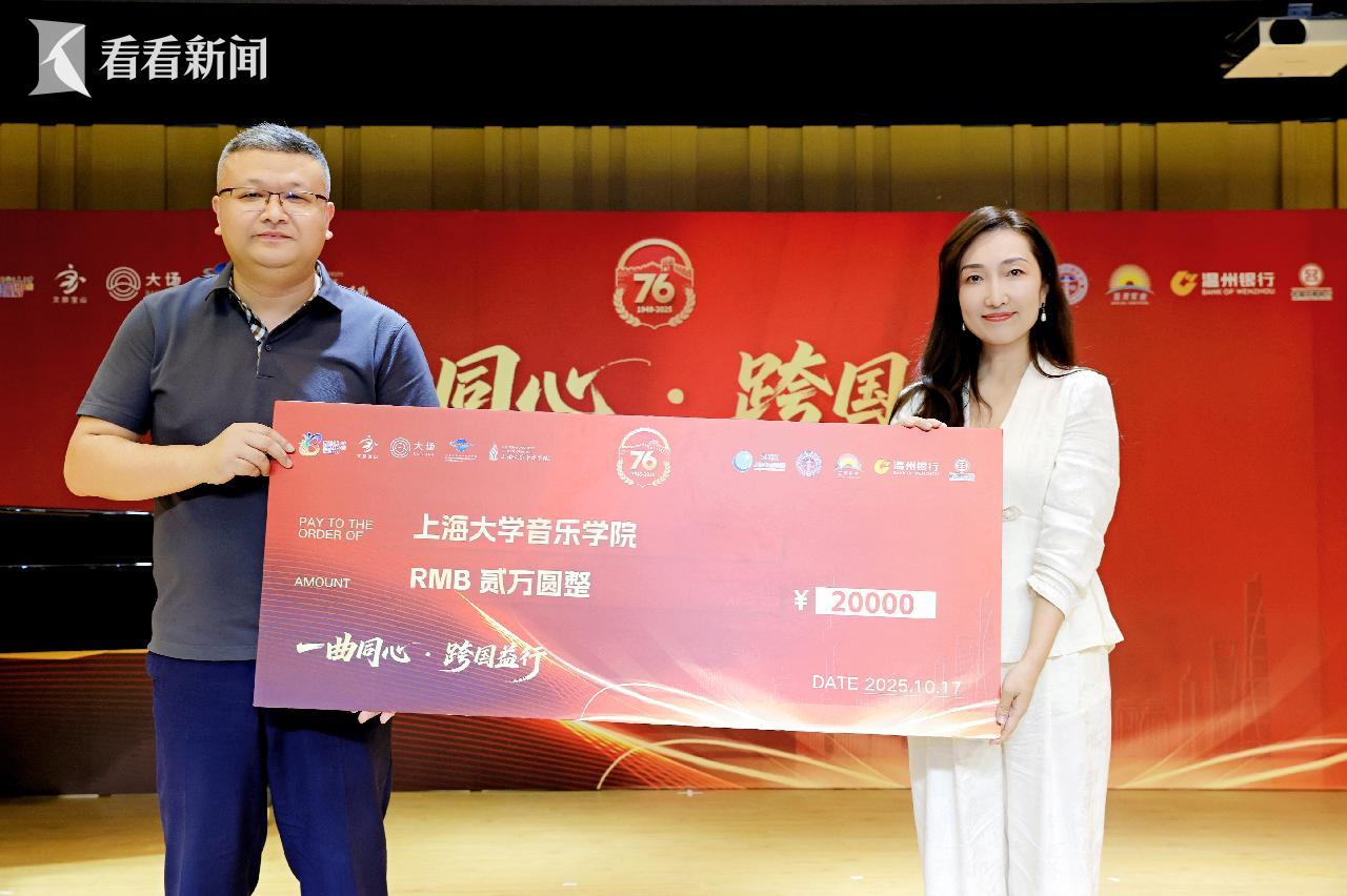 音乐会启幕前,一场温馨的捐赠仪式率先温暖现场。大场镇向上海大学音乐学院捐赠资金与物资,专项用于支持中外青年文化交流与艺术教育公益项目,践行“跨国益行”初心。据悉,本次音乐会所筹集的公益资源将用于打造“跨国文化公益课堂”,由上海大学留学生担任志愿教师,为社区儿童提供“外语+艺术”双轨教学,并定期举办“中外文化沙龙”,让跨文化交流融入日常。