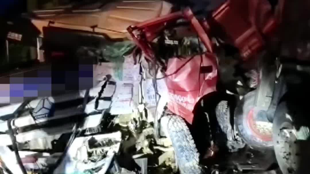10月20日22时,G98海南环岛高速陵水往三亚方向距离英州出口约5公里处发生严重交通事故,一辆装载混凝土板的挂车追尾一辆装载旋挖机的运输车,造成装载混凝土板挂车车头严重变形,司机被困的驾驶室内无法脱困,且导致挂车车载LNG气体动力罐体破损泄漏,随时有可燃风险,情况危急。