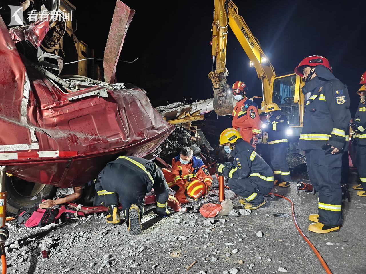 陵水消防救援大队指挥中心接警后立即派员到场处置。 0时56分,被困司机成功被救出,意识清醒,生命体征正常,被移交给 120医护人员进行后续治疗。