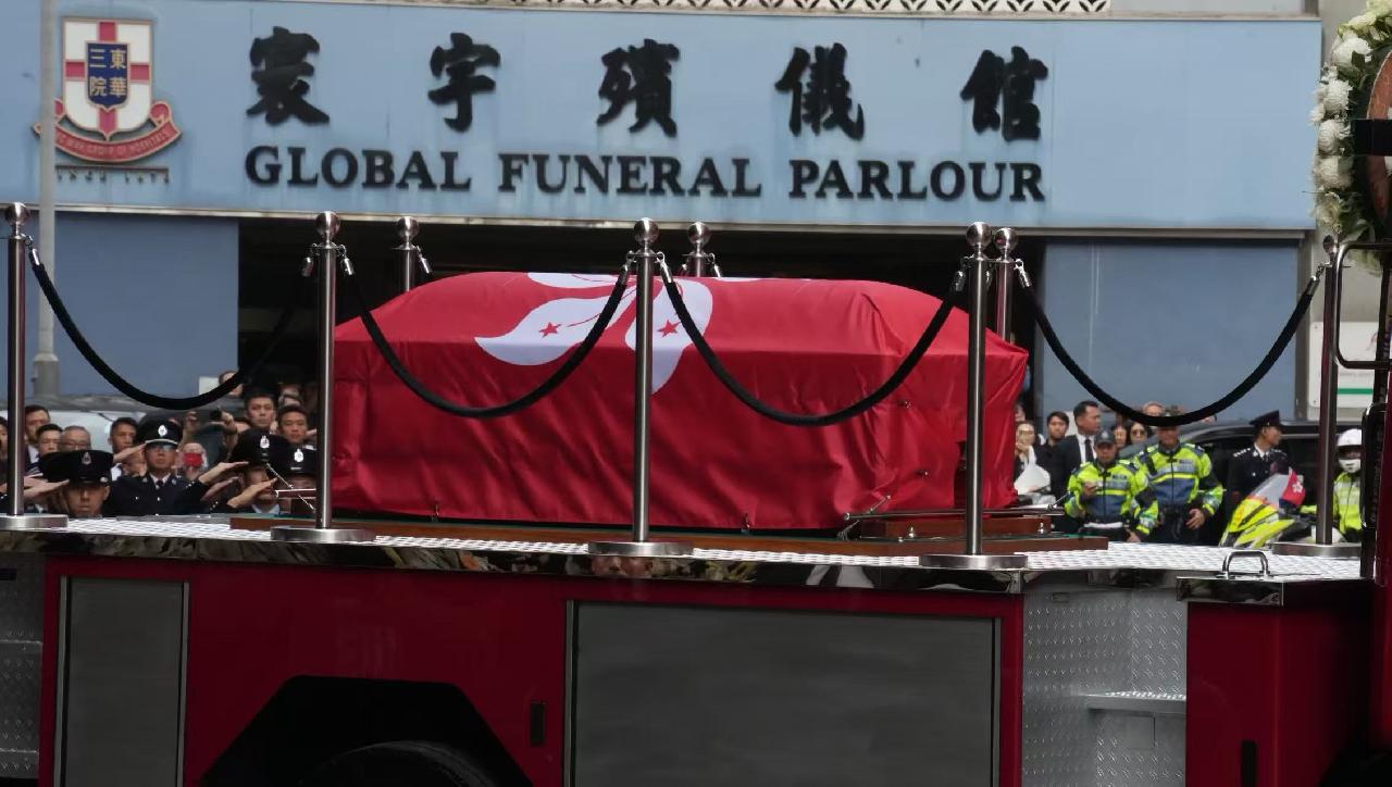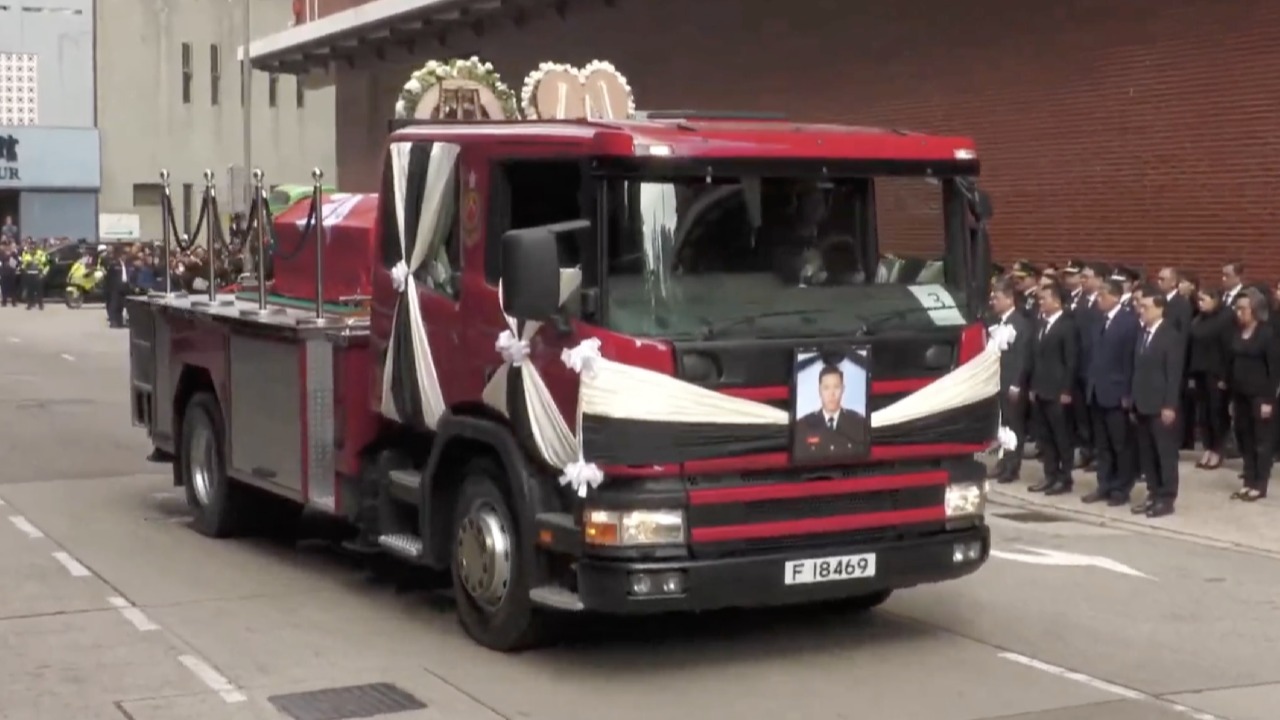 官方仪式今日上午于殡仪馆举行,丧礼仪式后,灵车离开殡仪馆,路经大埔太和路、宝乡街、广福道和大埔公路元洲仔段,抵达大埔宏福苑进行路祭,之后再前往沙田消防局,由消防处处长杨恩健带领消防人员列队致最后敬礼,灵柩之后移送浩园安葬。