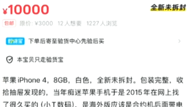 在某社交平台上,关于iPhone 4的话题已经超过5.4万条讨论,超2500万浏览量。在二手交易平台,二手iPhone4的售价在50元至上百元不等,而全新未拆封的iPhone 4设备则被标价上千元至万元。