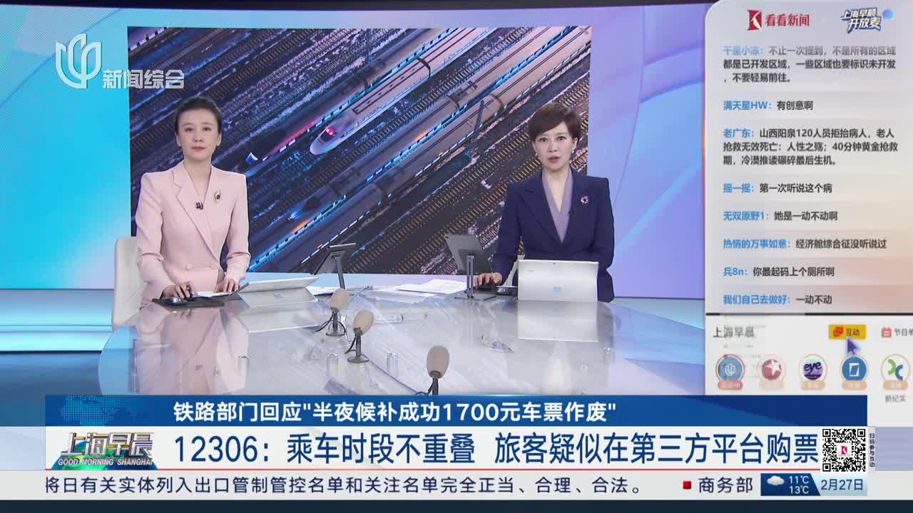 铁路部门回应“半夜候补成功1700元车票作废”12306:乘车时段不重叠 旅客疑似在第三方平台购票