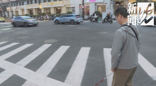 任铮浩上海市盲童学校教师:在一些特别复杂的环境下,我其实不知道自己是不是走的直线。长期以来,过马路是我们出行中非常大的障碍,很容易就过斜掉。现在有这样一个方向的指引,我觉得对于视障人士的出行会有非常大的帮助。