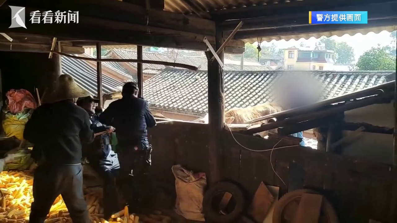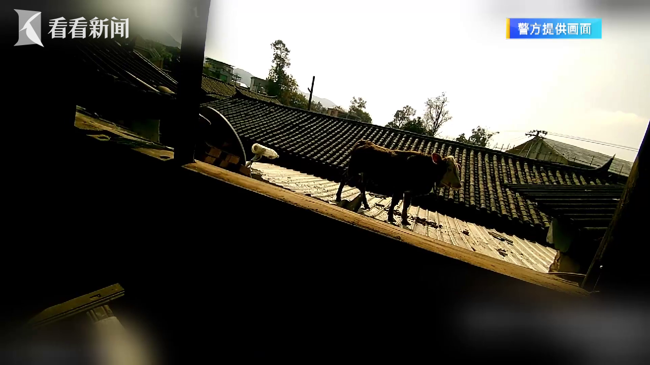 前几天,昆明宜良北古城镇的武大爷打完草料回到家,发现刚买了一个多月的小牛不见了。可大门明明是关着的,牛去哪儿了呢?循着声音,武大爷发现,小牛竟然站在自家的房顶上。
