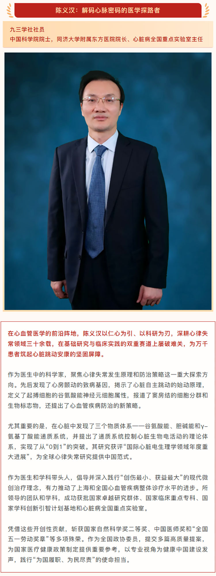 即日起,“浦江同舟”将为您逐一介绍这十位党外代表人士。本期,请看九三学社社员,中国科学院院士,同济大学附属东方医院院长、心脏病全国重点实验室主任陈义汉的事迹。