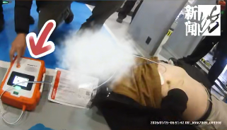 民警立刻拨打120,并呼叫车站工作人员将AED设备送至现场。随后,立即用AED对赵先生进行救治。