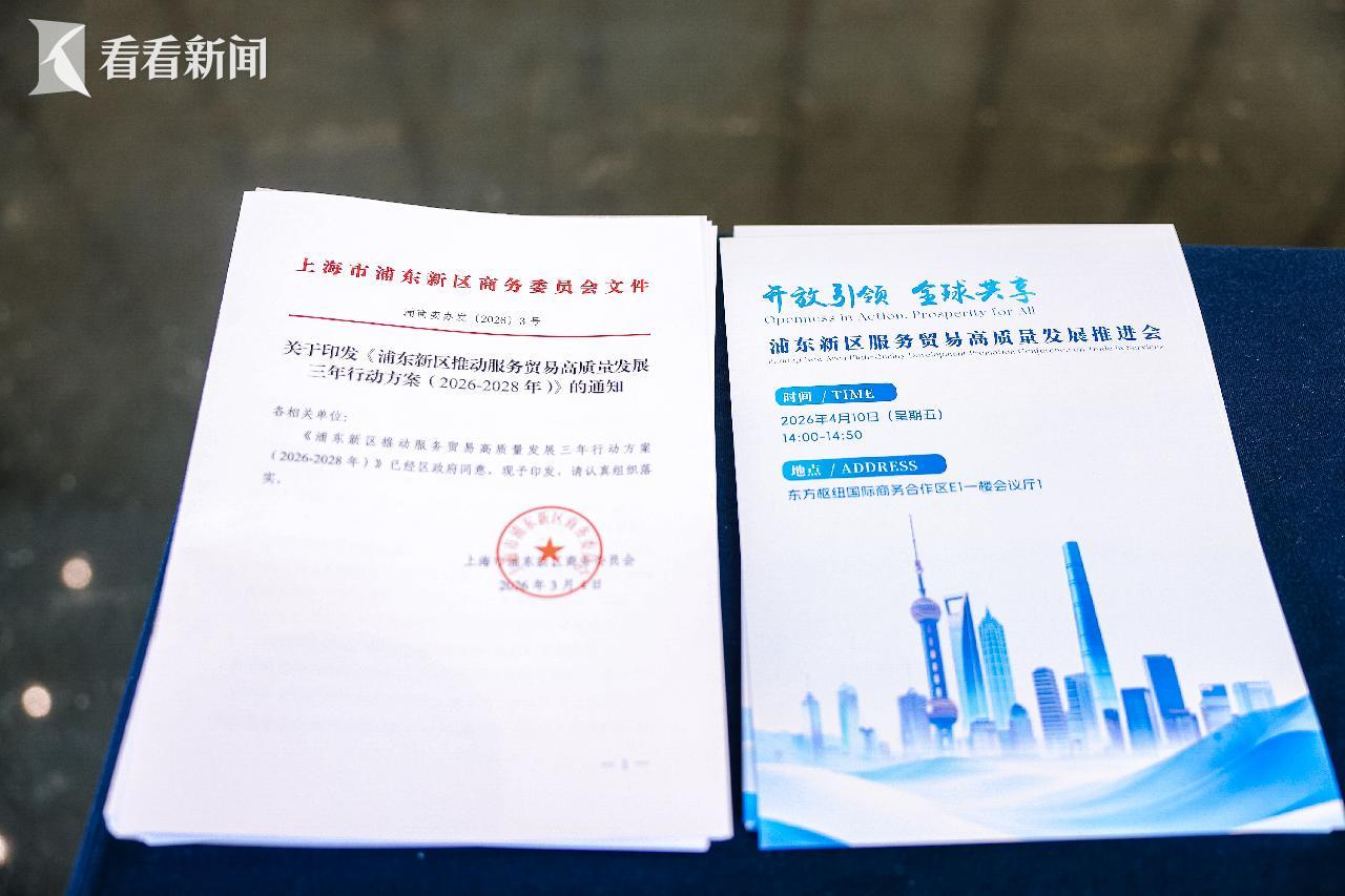浦东今天发布服务贸易领域首个系统性三年规划——《浦东新区推动服务贸易高质量发展三年行动方案(2026-2028年)》。方案明确,到2028年,全区服务贸易规模要突破1400亿美元,数字贸易总额超过700亿美元,十亿级服务贸易企业达到10家以上。