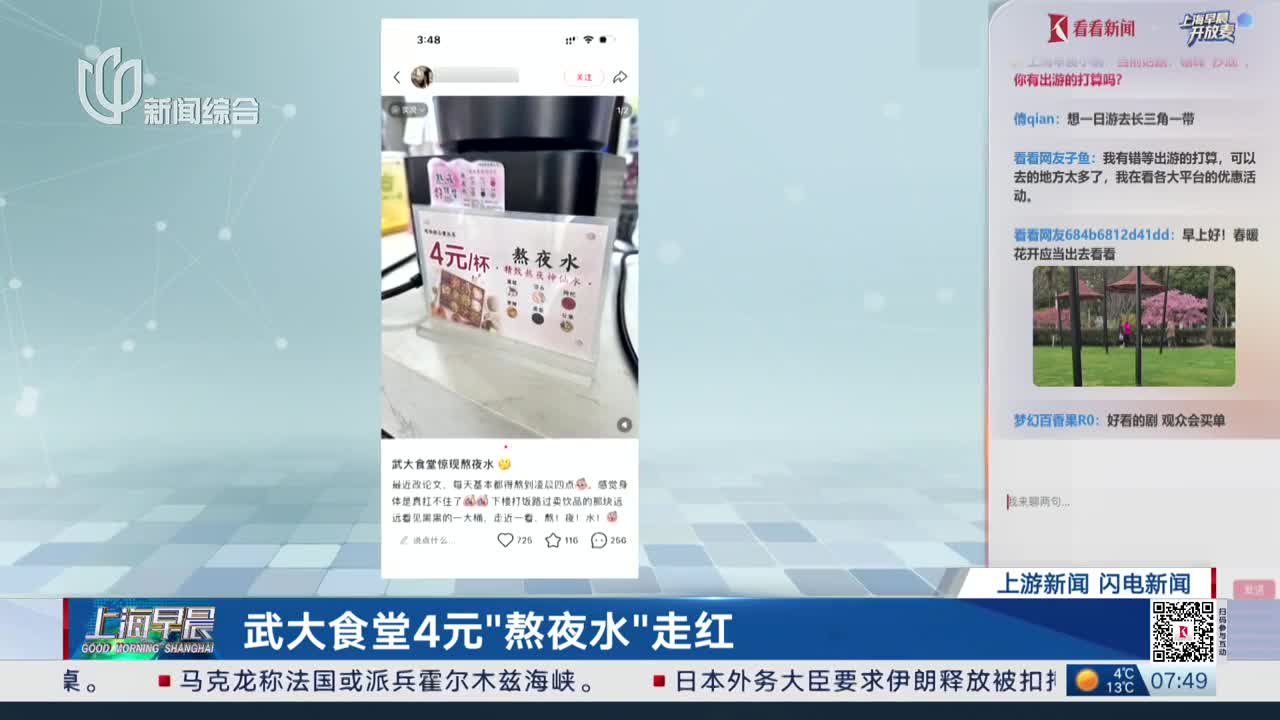 武大食堂4元“熬夜水”走红