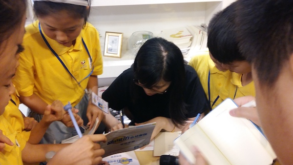 老师课后给小记者们签名留言。