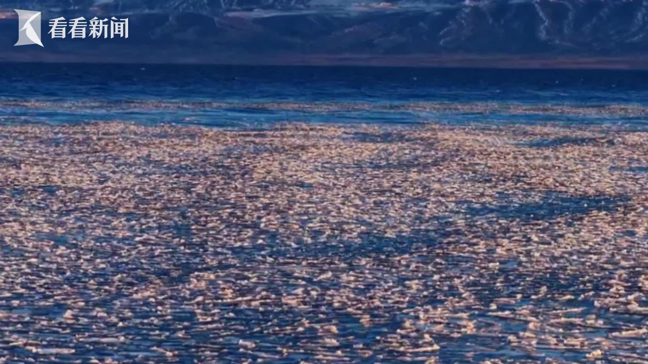 冬日的阳光洒下,冰凌透出细碎的光,仿佛整片湖洒满了碎钻。湖面与雪山交相辉映,一幅山宗水源的极致画卷徐徐展开。