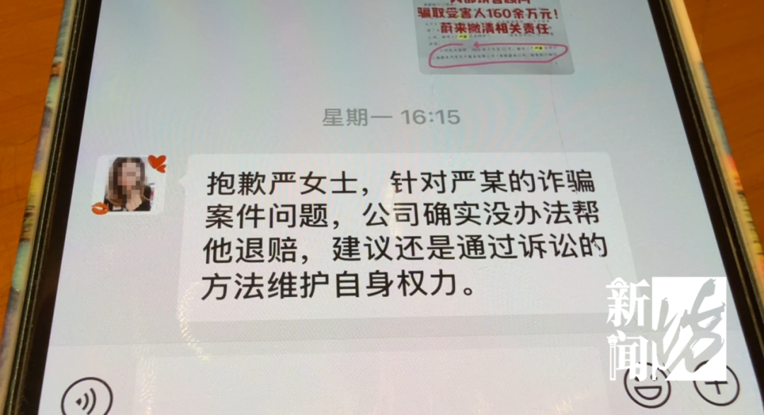 严女士和其他消费者发现 这竟是一个骗局 目前销售严某已经 被判十年三个月有期徒刑 但让严女士气愤的是 时至今日,诈骗欠款并未退还 蔚来公司也没提出明确说法 这名销售是如何获得消费者信任 蔚来公司应该要付怎样的责任 一起来看坊记的调查! 严女士告诉坊记,2024年3月,她在南翔印象城蔚来销售店购买了一辆ES6型号新能源车,并在同年4月提车。2024年11月初,蔚来销售严某表示,公司有额外优惠的福利活动,可为其他车主垫付车款,之后再由蔚来公司返还,可以得到利息奖励。 严女士 蔚来车主: 24年11月份的时候,他跟我们说,蔚来公司出了个福利合伙人的活动,为了加强蔚来内部车辆的流转。活动的规则是这样的,给一些要在蔚来买车的人先垫付资金,让他能够顺利非常快速拿到车,这样提升蔚来在当月的销量。 坊记:那结果这钱怎么还你们呢? 严女士 蔚来车主:他说蔚来公司会返还的,就是从蔚来的账户会直接打到我们的账户。 对于销售的说辞 严女士及另外四位消费者 信以为真 比如严女士,就将26.7万元车款,打到了销售严某指定的,所谓欲买车车主的账户。期间,甚至还拿到了3万多元所谓的利息,但就是不见本金。 直至去年11月底 由于销售严某失联 严女士发现不对劲并报警 警方抓捕严某时 已经诈骗了160万余元 最终,严某被嘉定法院以诈骗罪,判处有期徒刑十年三个月。 严女士 蔚来车主: 在判决书上看到是12月离职的,他可能当时并没有离职,但是蔚来的员工跟我说他早就离职了,所以我觉得这也是蔚来规避责任的一个方式。 严女士说,严某实施诈骗时,就是蔚来公司正式员工。消费者一般都会认为,其行为代表公司,很难产生额外疑虑。因此她认为,蔚来汽车对于自己的员工管理,负有不可推卸的责任。 但对于这个问题 蔚来公司负责人却表示 这是个人行为 对于蔚来公司的表态 作为消费者的严女士称 “觉得特别寒心” 贺晓敏 蔚来汽车用户体验官: 因为属于个人诈骗企业,我不知道该怎么去鉴定这么一个东西,如果是说要咨询这一块的话,那可能需要咨询一下我们的法务。 蔚来的这位服务官在电话中向严女士表示,电子合同的公章使用,需要走公司流程,销售严某很可能是伪造了公章。 不过,坊记注意到,法院的判决书上,并没有对公章是否伪造予以认定,因此难以确定公章的使用,公司其他人是否知情。 贺晓敏 蔚来汽车用户体验官:我们是有标准公章申请流程的。 坊记:那他怎么能够拿到你们的公章? 贺晓敏 蔚来汽车用户体验官:我们所有合同上面的章都长一样的,是不是他自己ps的,你这个要问一下警方。问题是这在我们体制内,公章有申领的流程,还有专业财务看管,需要通过审批才能盖到公章,是这么一个逻辑。 如今判定蔚来是否需要担责的关键 就在于这份协议的公章 刘雪妮 上海普世万联律师事务所律师: 上面也有蔚来公司公章,如果这个公章是经过蔚来公司内部流程形成加盖的,那么蔚来公司应当承担责任。我看到这个判决书中对于这个公章的真伪情况也没有进行判定,所以说我认为还是存在这种可能性的。 另外,蔚来公司应当加强内部优惠政策,购车优惠政策的公示情况,至少应提供一些渠道,让消费者有知情权知道公司现在内部有什么优惠,这样方便消费者在购车的时候了解相关的情况,以免被骗。 蔚来公司还应该提供相应的一个400相关的渠道给消费者来核实,消费者则要注意在这个相应的优惠政策中,不要把这个款项支付到个人的账户。 小坊将持续关注 事件最新进展! 最后,小坊提醒: 无认哪一种福利 但凡需转账至个人账户 消费者都应该提高警惕 以免遭受财产损失! 如果你有“急难愁盼” 两种途径呼叫