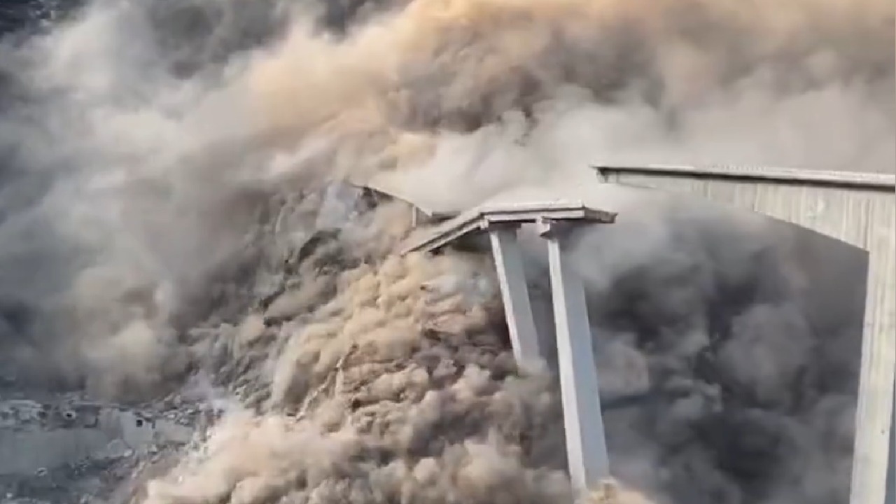 11月11日,多位网友发布视频反映四川阿坝州马尔康市红旗特大桥发生垮塌,视频画面显示,山体倾泻大量山石,靠近山体一侧的桥墩和桥面发生断裂垮塌。