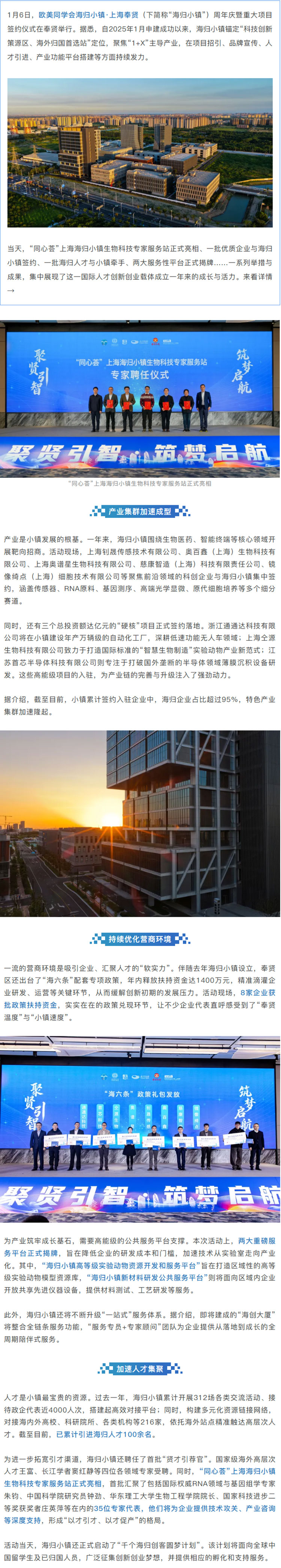 上海唯一的海归小镇成立周年,“同心荟”专家服务站正式亮相