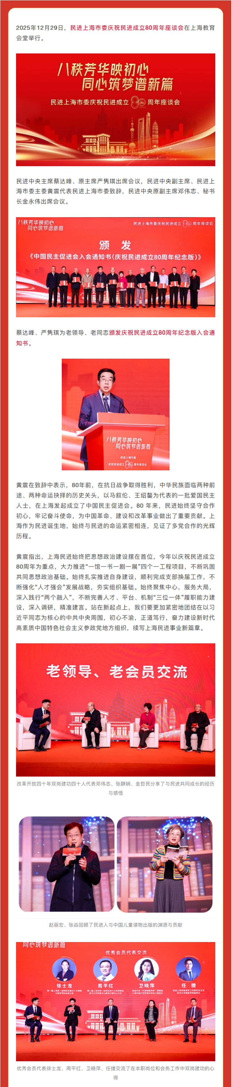 民进上海市委召开庆祝民进成立80周年座谈会,这些集体和个人获表彰→