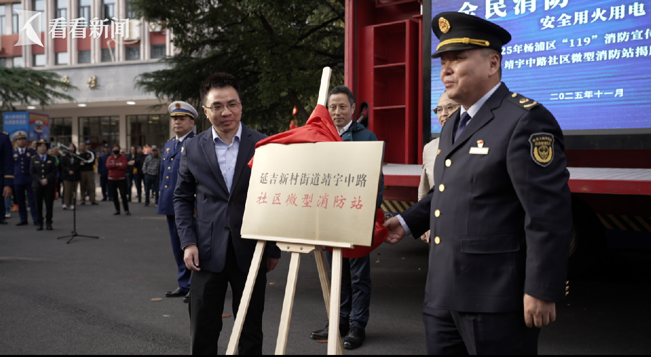 “119”消防宣传月期间,杨浦区靖宇中路社区微型消防站正式揭牌,这标志着杨浦区基层消防力量增添了新的支撑点,将进一步巩固社区消防安全“最后一公里”的防线。