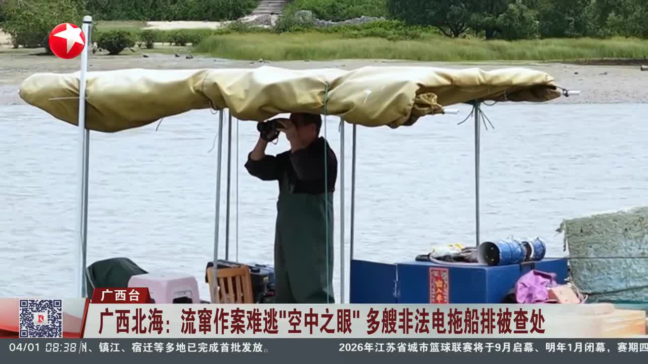 广西北海:流窜作案难逃“空中之眼”多艘非法电拖船排被查处