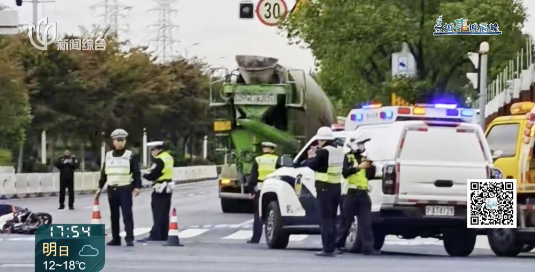 我妈就下班之后去接孩子放学,在华宁路和银秋路口,遭遇水泥搅拌车右转,把我妈带到车底下,我妈当场没有了,被直接从上半身全部碾压了。