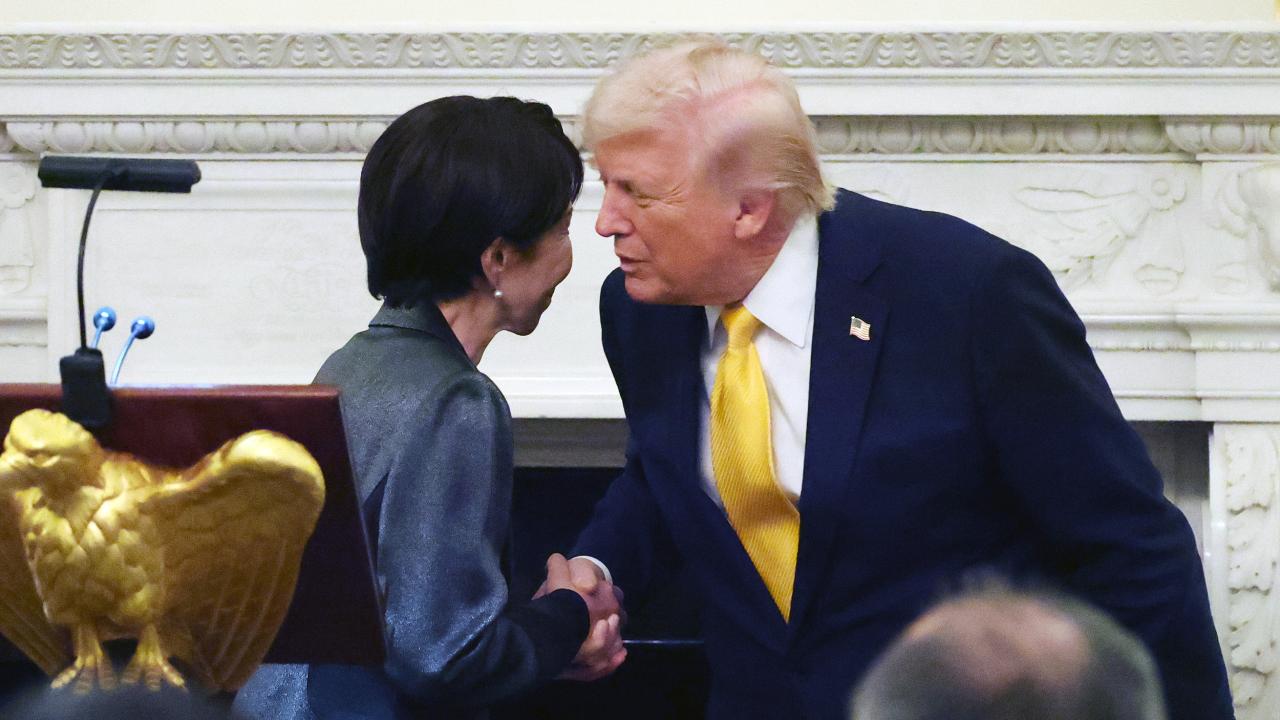 美国总统特朗普3月19日在白宫与来访的日本首相高市早苗举行会晤。这是高市就任首相后首次访问白宫。美方未安排公开欢迎仪式,高市从白宫西翼入口进入。在椭圆形办公室的媒体开放环节,特朗普夸夸其谈,整整16分钟,高市被晾在一边,而且没留时间给日语翻译。