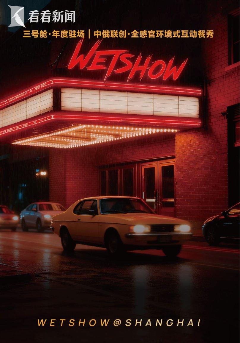 中俄联创·全感官环境式互动餐秀《WetShow》,通过音乐、舞蹈、灯光、气氛、美酒、美食和沉浸互动,全方位提升观众的愉悦体验,作品将部分关键情节推动的主动权交给观众——例如可由观众决定何时触发“下雨”效果,或邀请观众登台与演员一起“淋雨”等,实现了视觉、听觉、味觉与情感的多维贯通,让100余位观众在每个环节都能感受到全感官被“沉浸式包裹”的观演体验。