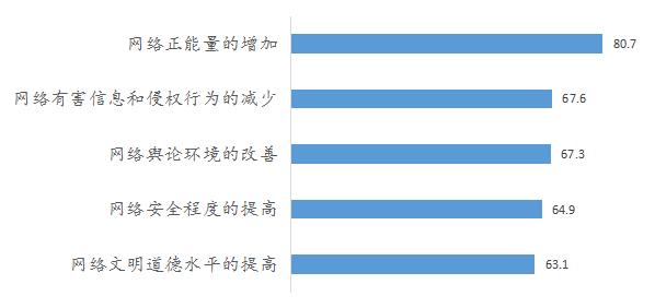 网民对各项网络治理行动的支持度(%)