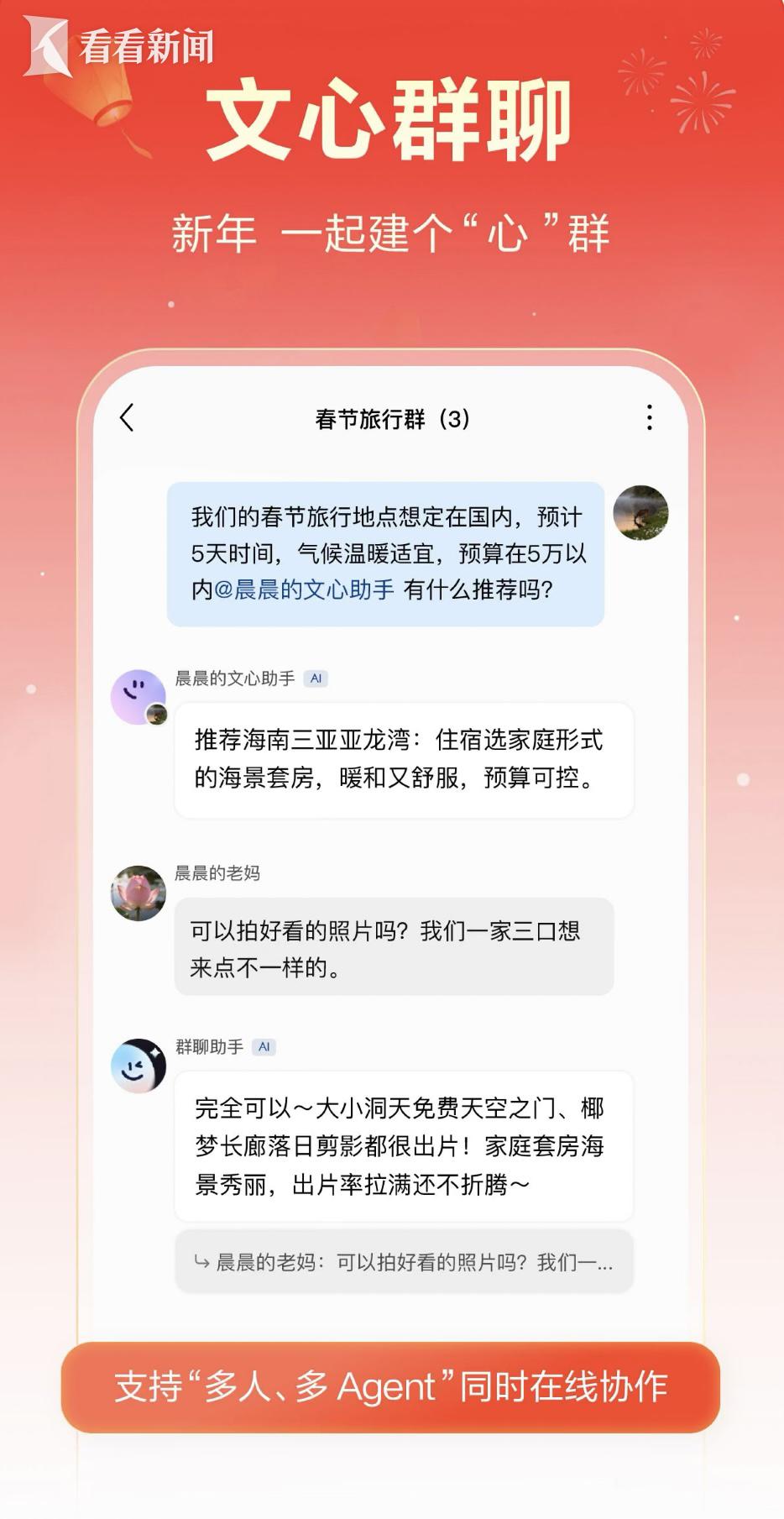 1月27日,百度旗下文心APP推出的行业首个“多人、多Agent”群聊功能开启新一轮内测。用户可将APP升级至最新版本后查看是否出现群聊入口并进行体验。