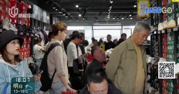 顾客:想到过人多,但是没想到有这么多,还要排队,上海的消费可以的。