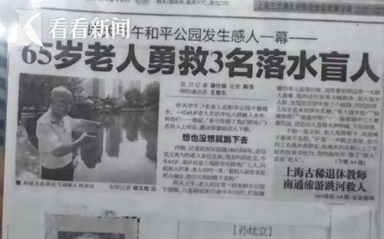 孙灶立,曾是一名军人,1969年退伍后回到工厂。2009年、65岁的他在和平公园救起三名意外落水的盲人。孙灶立说,无论什么时候,路遇险情,倾力相助,是作为一名军人的底色。