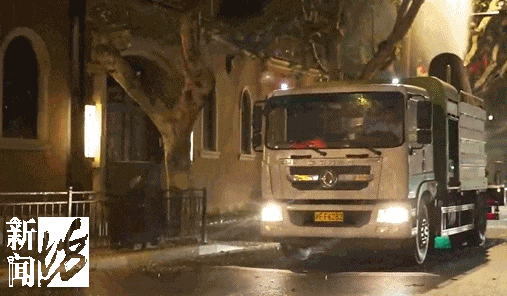22日深夜,静安区绿化部门用风筒车向悬铃木树冠喷射强风,随即用雾炮车喷洒水雾,黄褐色果毛如细雨般沉降,湿润的路面很快铺就一层“天然毛毯”。