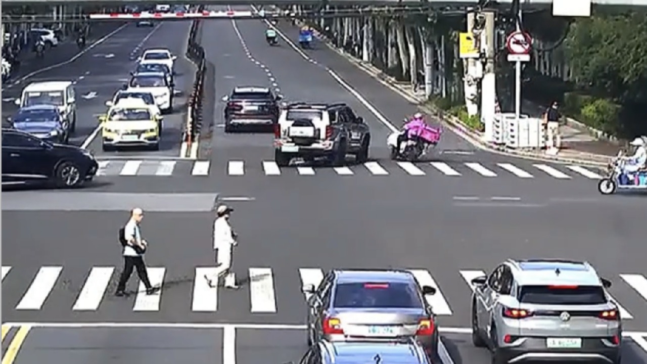 近日,上海祁连山南路同普路路口上演惊险一幕,一辆非机动车因闯红灯横穿马路,与正常行驶的机动车发生猛烈碰撞。