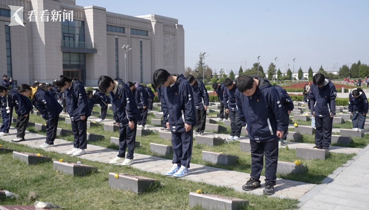 在烈士墓区,刻有赵存仁、高增岳等烈士姓名的2160座卧碑整齐排列,前来祭拜英烈的群众神情肃穆,他们手持白花依次缓步上前,敬献鲜花、擦拭墓碑、驻足凝望,寄托对英烈的敬仰。