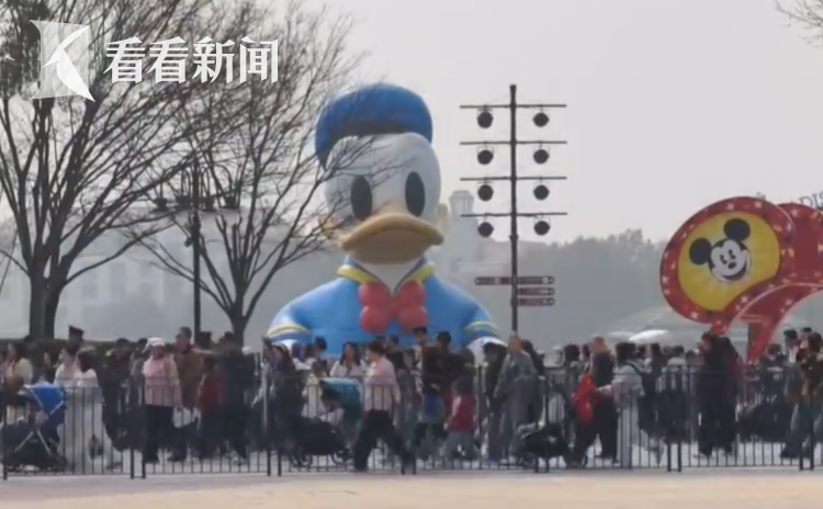 上午九点半,迪士尼乐园主入口,排队入园的队伍里三层外三层排到了湖边。人群中,大多是推着婴儿车的家长和穿着卡通服装的孩子。