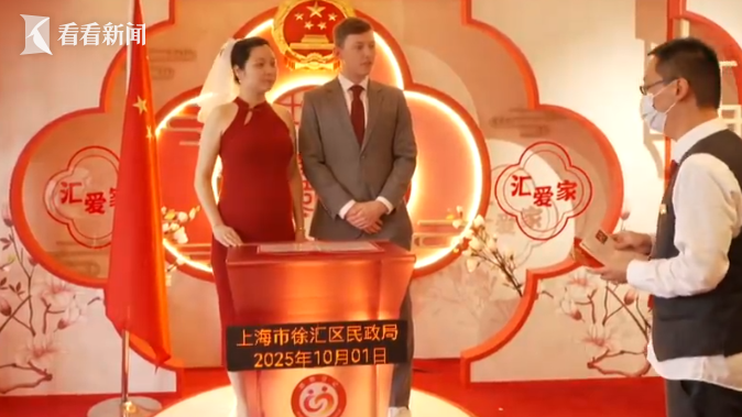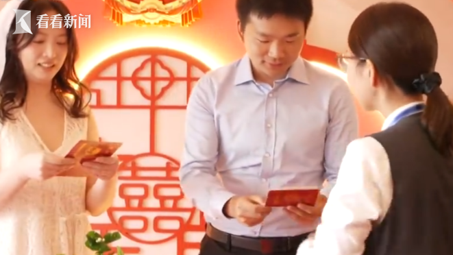 许多新人会选在国庆当天结为连理,许下一生爱的诺言。而上海的婚姻登记机构,也放弃休假,开放服务,为新人们“撒糖”。