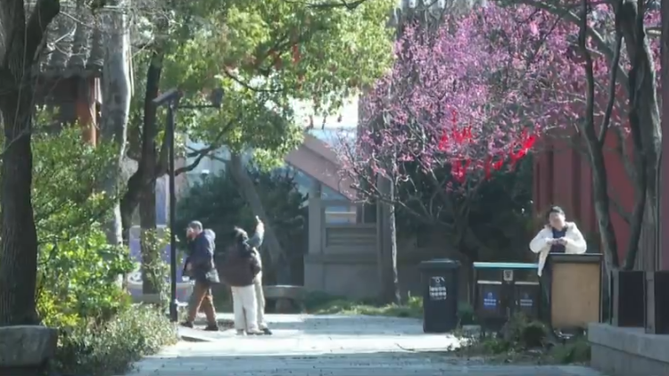 天气晴好,体感舒适,广富林文化遗址里的游人也多了起来,不少都是老中青三代举家出游,景区里处处洋溢着阖家欢乐的新春气息。