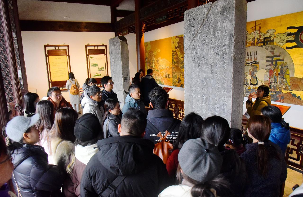 市民游客在钱王祠景区追剧寻史