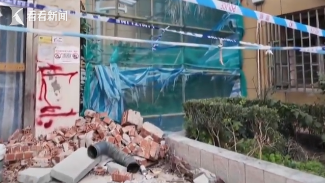 上海海锋建设工程承包有限公司 现场负责人 陈永:目前是加固算完成了脚手架,这边街道是说以后装修还要使用,就是没有拆除。