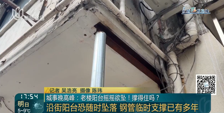 沿街老楼阳台恐随时坠落!