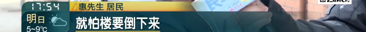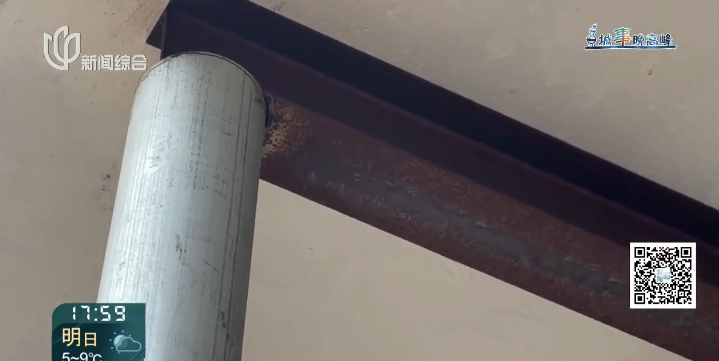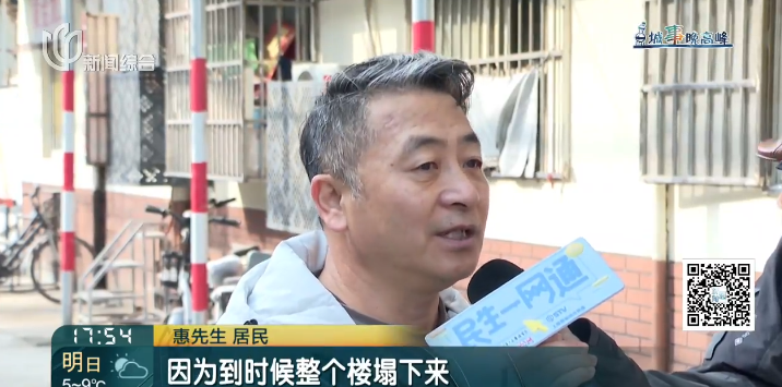 惠先生 居民:老百姓通过12345打电话,也反映了这个问题,居委物业业委会也想尽办法,最后想出来用固定架来固定这个,但是老百姓住在里面还是不够安全。