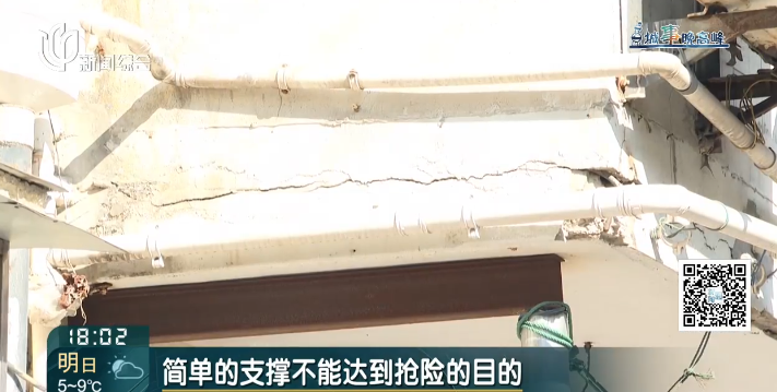 建筑专家看到现场后,也吓了一跳,并表示从目前情况来看,支撑的钢管不能杜绝发生坍塌的风险。