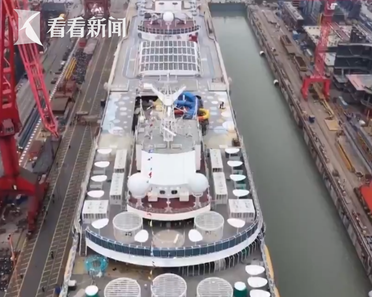 3月14号,“爱达·花城号”正式开始出坞作业,坞内注水后,邮轮顺利起浮。