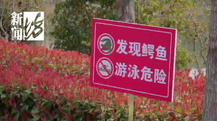 自从10月以后,就没再发现这条鳄鱼了,它有可能通过其它水系进入其它河道。接下来,我们把当时发现鳄鱼的照片在这些立牌上体现出来,让市民知道我们之前确实在这个河道里发现过鳄鱼,是为了大家安全考虑,并不是说我们在这忽悠大家,不让大家去游泳。