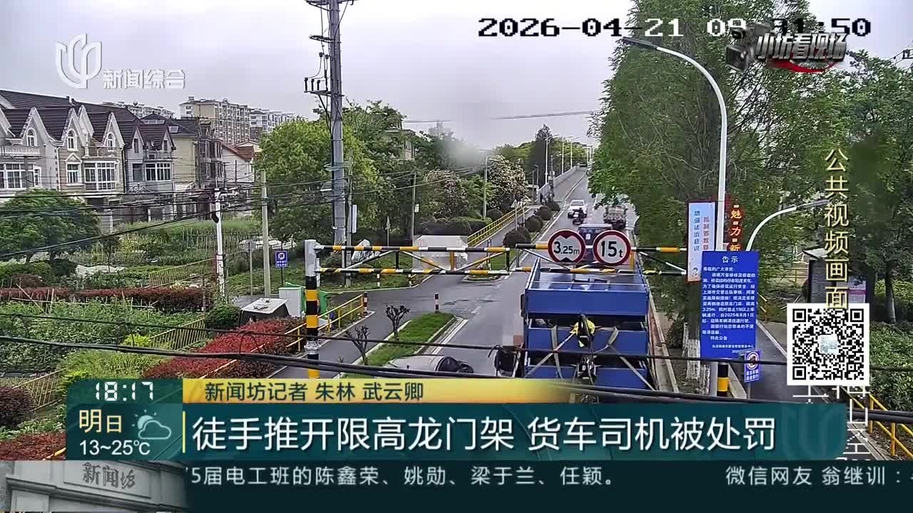货车司机嫌限高杆挡路 竟欲徒手推开被罚1700元