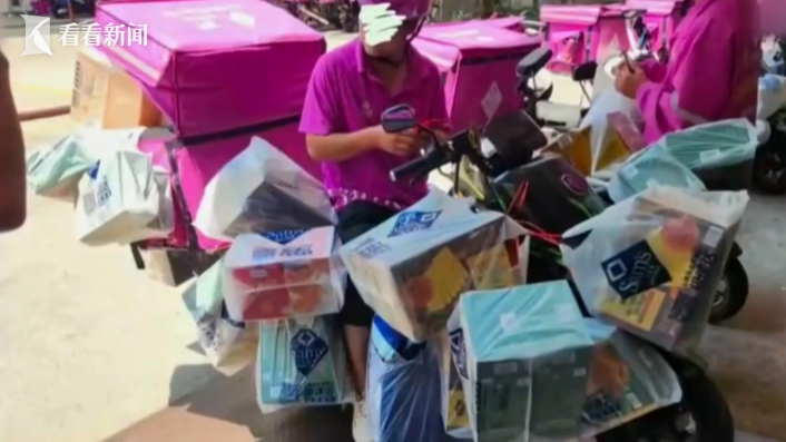 另一名骑手告诉记者,他们一次最多可以接6单,一些经验丰富的骑手会利用车把手、车身等各个部位装货。