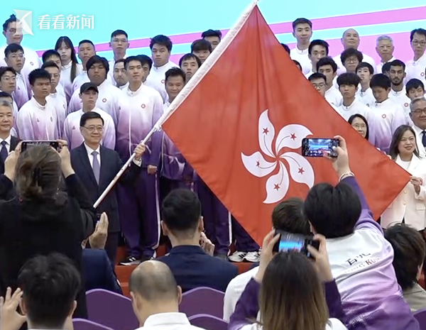 11月24日下午,香港特区行政长官李家超主持全国第十二届残疾人运动会暨第九届特殊奥林匹克运动会香港特区代表团授旗仪式。李家超向文化体育及旅游局局长兼香港特区代表团团长罗淑佩授予香港特区区旗,为将于下月出战残特奥会的香港特区代表团成员打气。