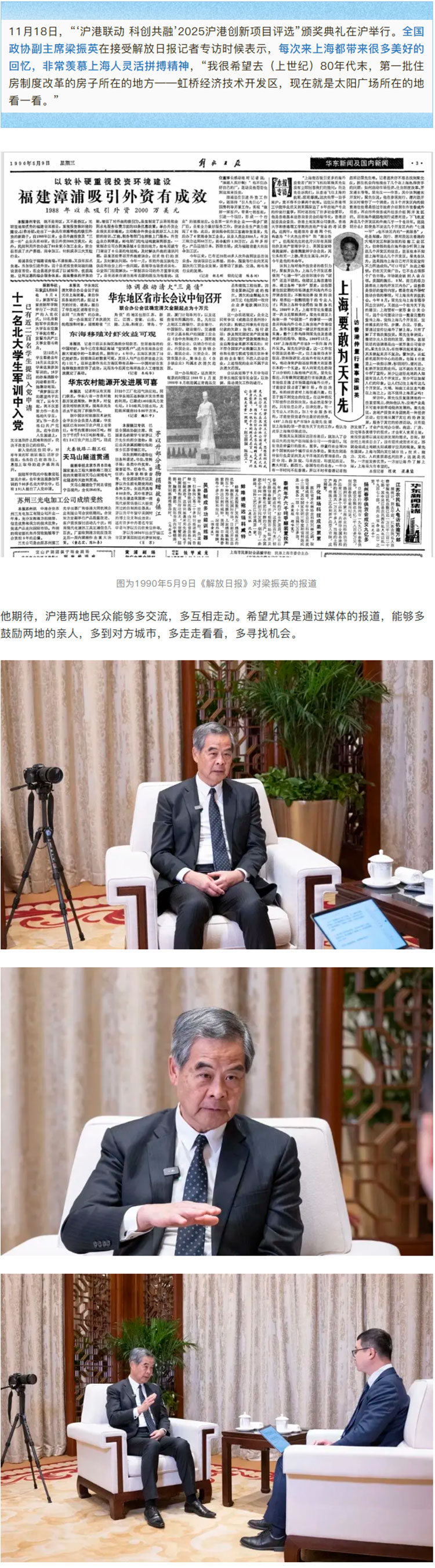 解放日报专访梁振英副主席:上海给我美好回忆,希望两地民众多走动