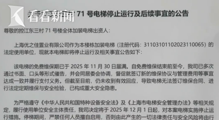 在控江东二村小区,看看新闻Knews记者了解了这台加装电梯停运的原因。