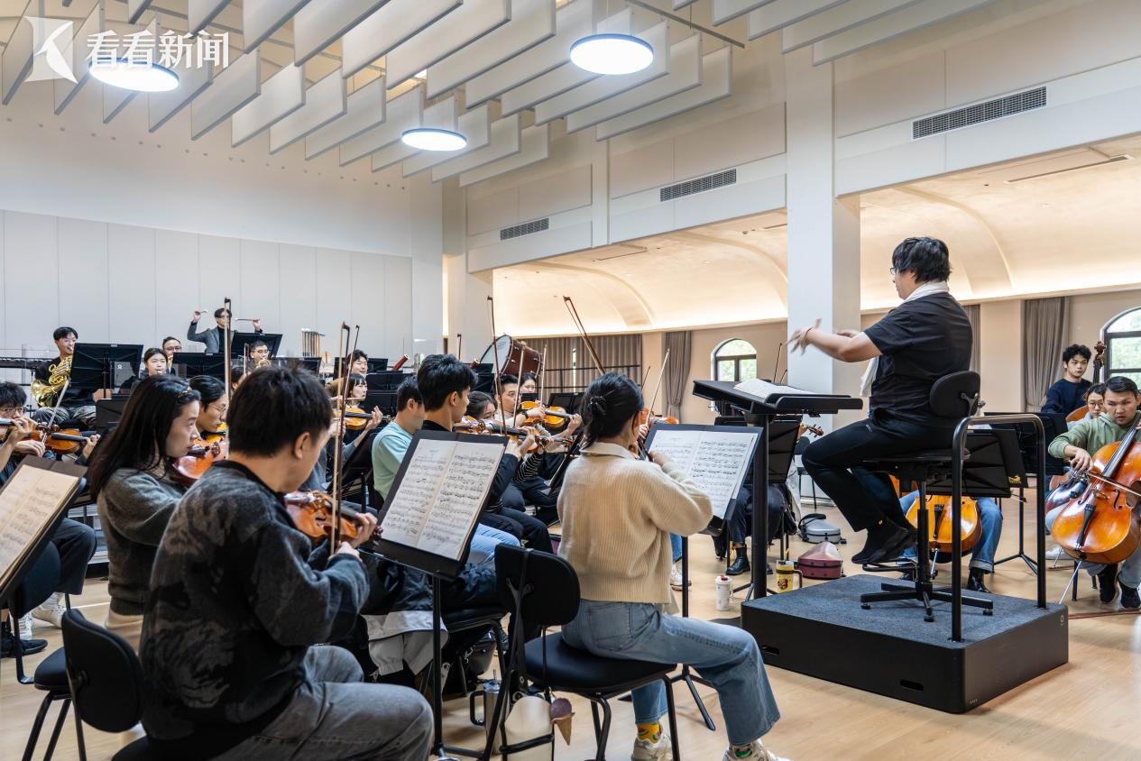 承担此次演出核心的,是成立不到一年的嘉兴大潮爱乐乐团。2024年,顶度集团董事长,乌镇旅游创始人、嘉兴大潮爱乐乐团创始人陈向宏和首席指挥俞潞,向全球艺术家发出招募令,从全球各地上千位报名者中甄选出几十名年轻音乐家汇聚盐官古城,包括刚从音乐学院毕业的学子,也有已在职业乐团历练多年的资深演奏家,平均年龄仅25岁,还有不少"95后"、"00后"的新生力量。
