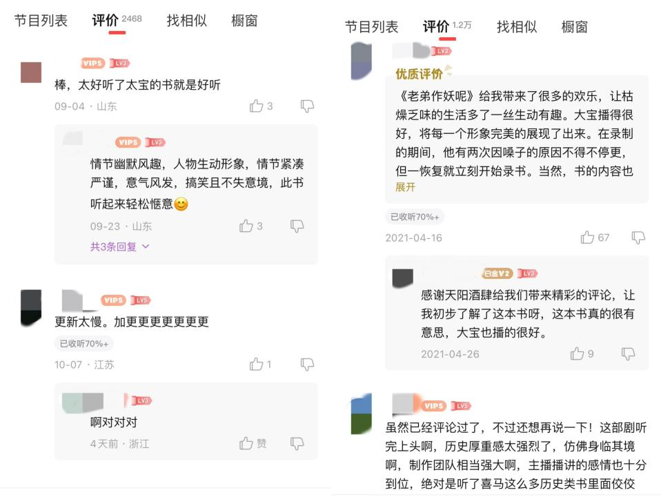 “轻松欢快的节奏是我最喜欢的风格,毕竟生活已经够苦的了,精神世界还是快乐一点比较好”,“超搞笑的故事,主播更是神来之笔,就像说单口相声似的,几乎是每集爆笑不断”,“大宝的声音真的是为搞笑小说而生的,非常让人觉得亲切接地气”......众多听友纷纷在牛大宝的专辑评论区表示好评。目前,牛大宝在喜马拉雅平台上吸引了超过426万粉丝的关注,累计播放量近100亿。