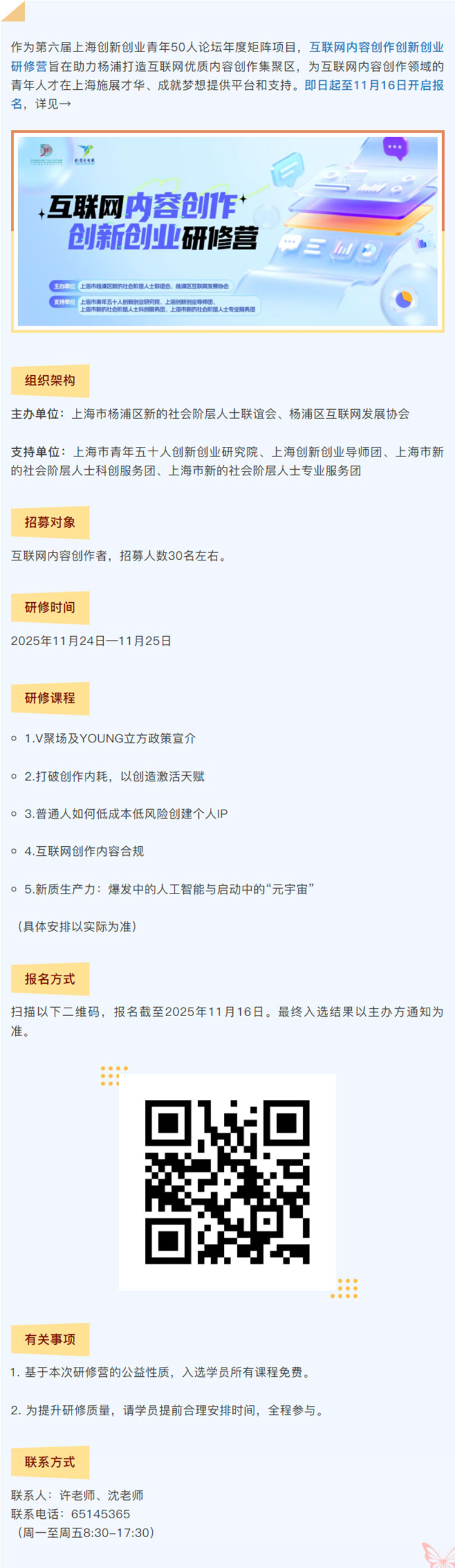 11月16日截止,互联网内容创作创新创业研修营报名启动→
