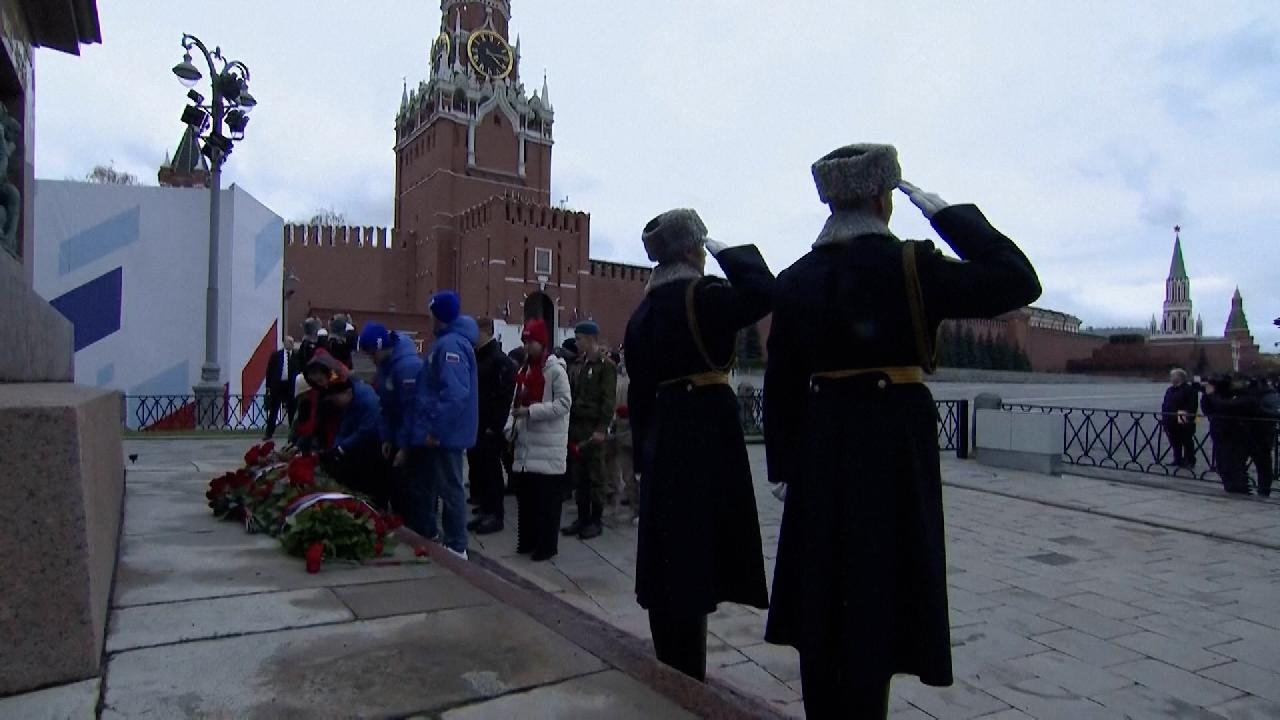 当地时间11月4日是俄罗斯的“人民团结日”,俄罗斯总统普京前往莫斯科红场向米宁和波扎尔斯基纪念碑献花。